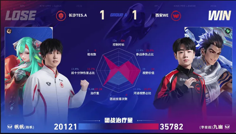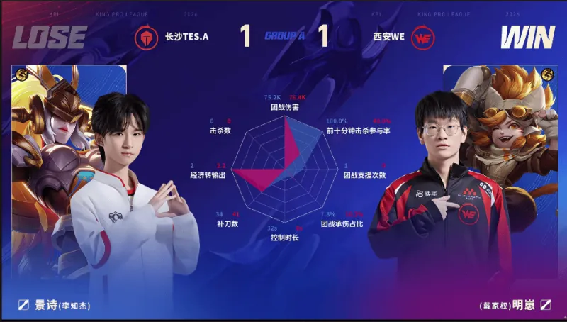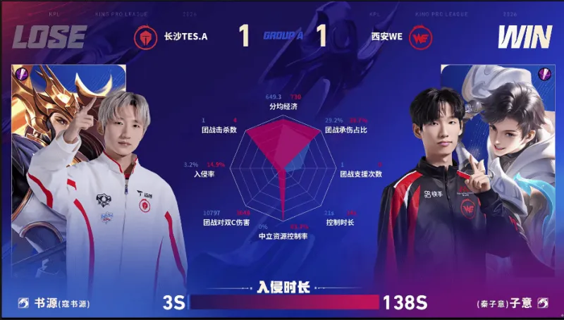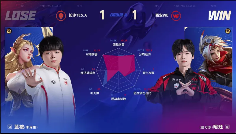 WE/TES.A第二局数据对比:九幽大禹拿到首胜!